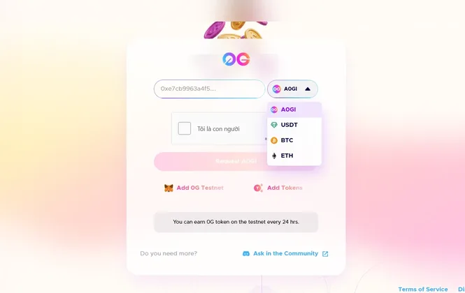 Access the testnet faucets at faucet.0g.ai or faucet.trade/0g-newton-testnet-a0gi-faucet to receive free A0GI tokens. Users need to enter their wallet address, complete captcha verification, and request tokens.