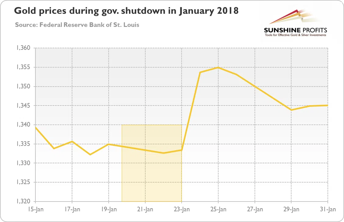 Many investors associate gold with stability whenever politics turn tense, yet decades of evidence reveal a calmer truth. During the 2018–2019 government shutdown, which lasted 35 days, gold rose only $20, or 1.6%. Market analysts called the movement negligible. In the 2013 episode, gold opened at $1,326 per ounce, climbed about 3% during the first week, then drifted lower before edging up again toward the end. The short shutdown in early 2018 followed the same rhythm, with prices moving in small, inconsistent steps rather than forming a clear safe-haven trend.