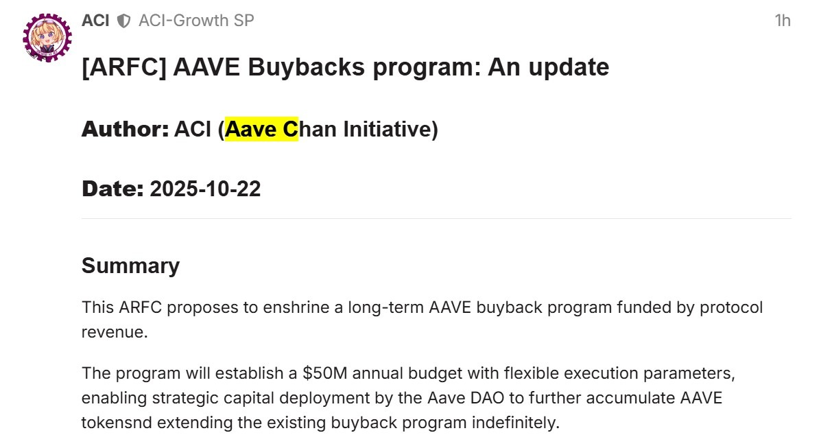 • Aave DAO proposes a permanent $50 million annual buyback program using protocol-generated revenue.