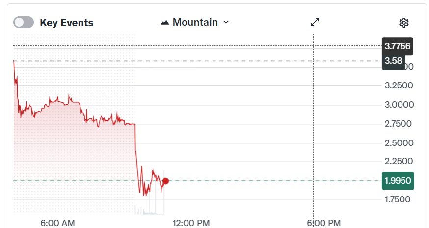 The decline extends a relentless downtrend for the company, whose shares are now down roughly 78% from their post-listing peak of $9.31 on Sept. 9. The sell-off reflects a broader unwinding across the digital asset sector, with miners and Bitcoin treasury companies facing intense pressure as the crypto market recoils.