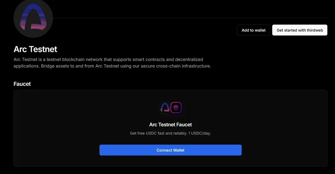 - Connect your wallet and add the Arc Testnet network