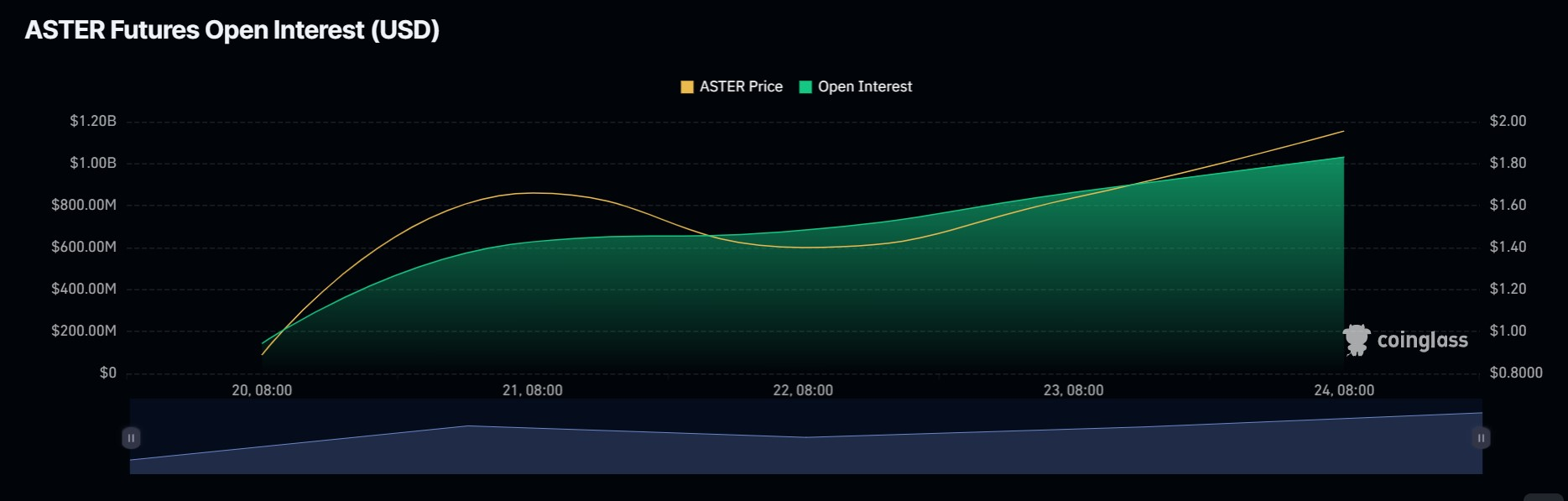 Aster, a decentralized perpetuals exchange built on BNB Chain, has staged a meteoric rise, with CoinGlass data showing open interest skyrocketing from $3.72 million on Friday to $1.25 billion by Wednesday. This 33,500% spike in outstanding contracts highlights a rush of traders deploying capital to the platform and signals rapidly growing market conviction.