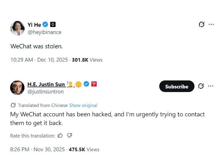 This incident isn’t isolated. In late November, Tron founder Justin Sun experienced a similar WeChat compromise, prompting him to notify users that he was attempting to regain control. These repeated attacks highlight a worrying trend: legacy platforms such as WeChat remain prime targets because of phone-number-linked login systems and long dormancy periods for unused accounts.