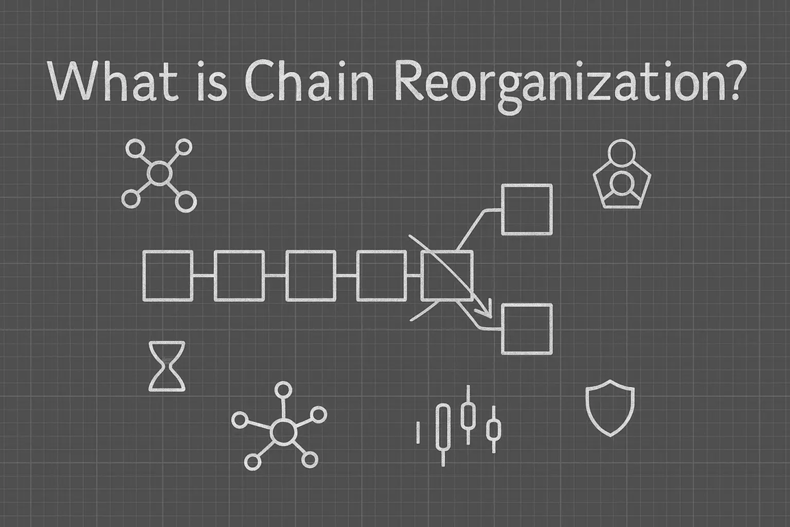 A reorganization, or reorg, happens when two or more competing chains exist simultaneously and the network later converges on the chain with the greatest cumulative work. Blocks on the losing branch are discarded, and the transactions inside them return to the mempool.