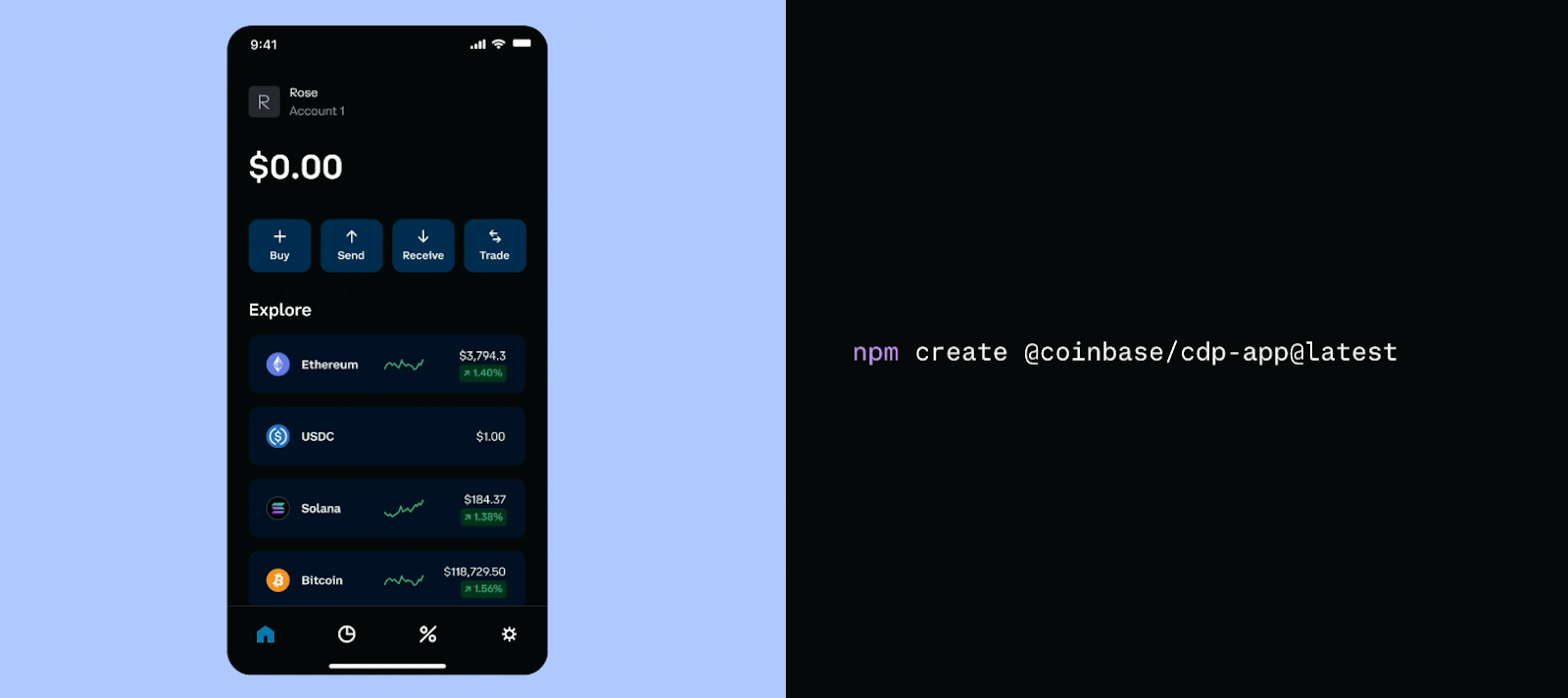 - Key features include crypto onramps, token swaps, and 4.1% APY on USDC.