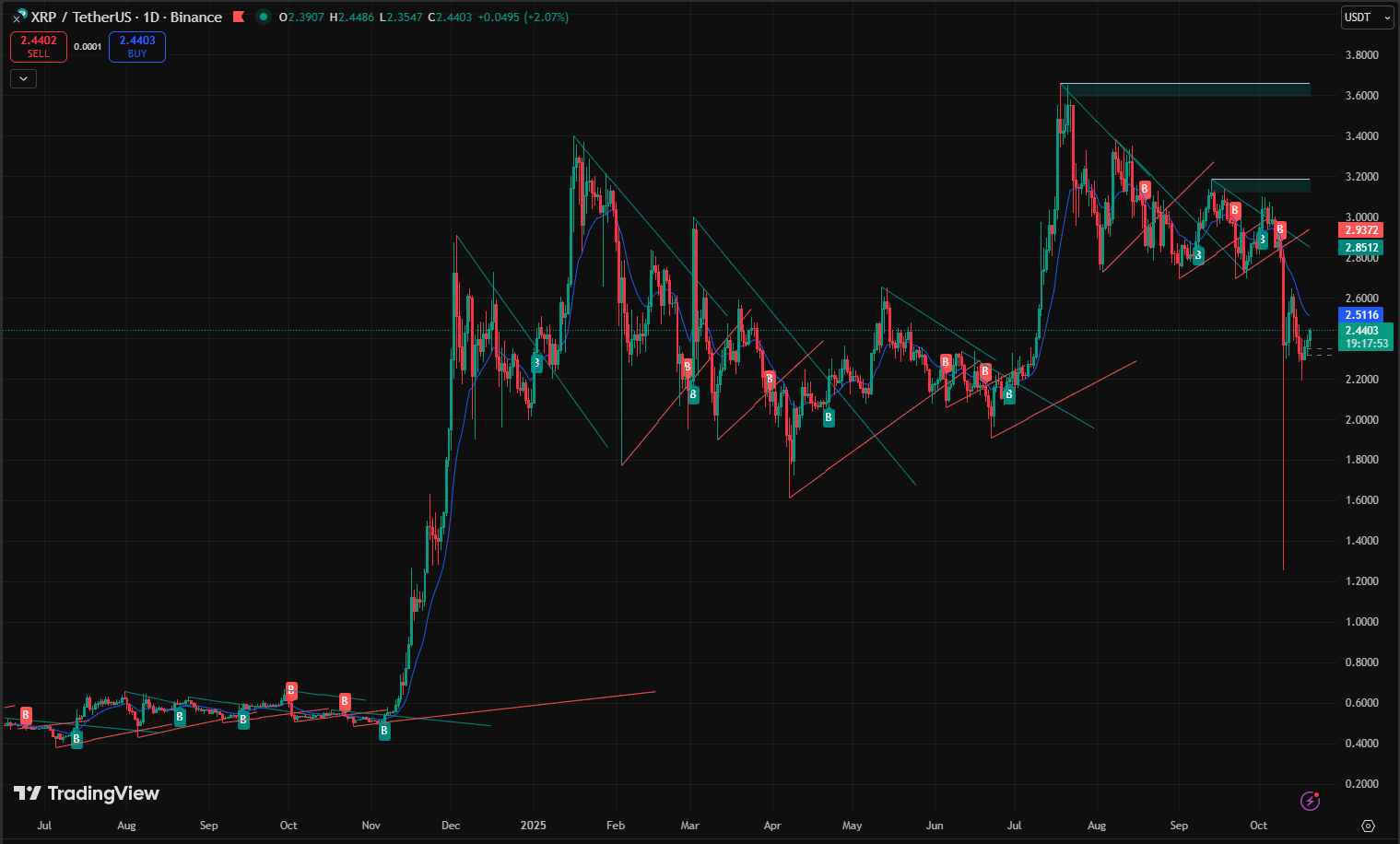 - Uptrend breakout: A decisive move above $2.70 could drive targets toward $2.90–$3.10, potentially fueled by renewed partnerships or positive developments in SWIFT integration and ETF speculation.