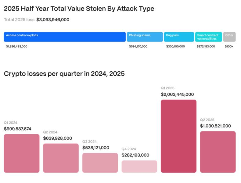 The scale of phishing damage is not confined to one month. Across the first half of 2025, crypto hacks and scams totaled over $3.1 billion, driven by increasingly sophisticated attack methods. In August alone, malicious exploits drained over $163 million, showing that phishing remains a top threat alongside broader hacks.