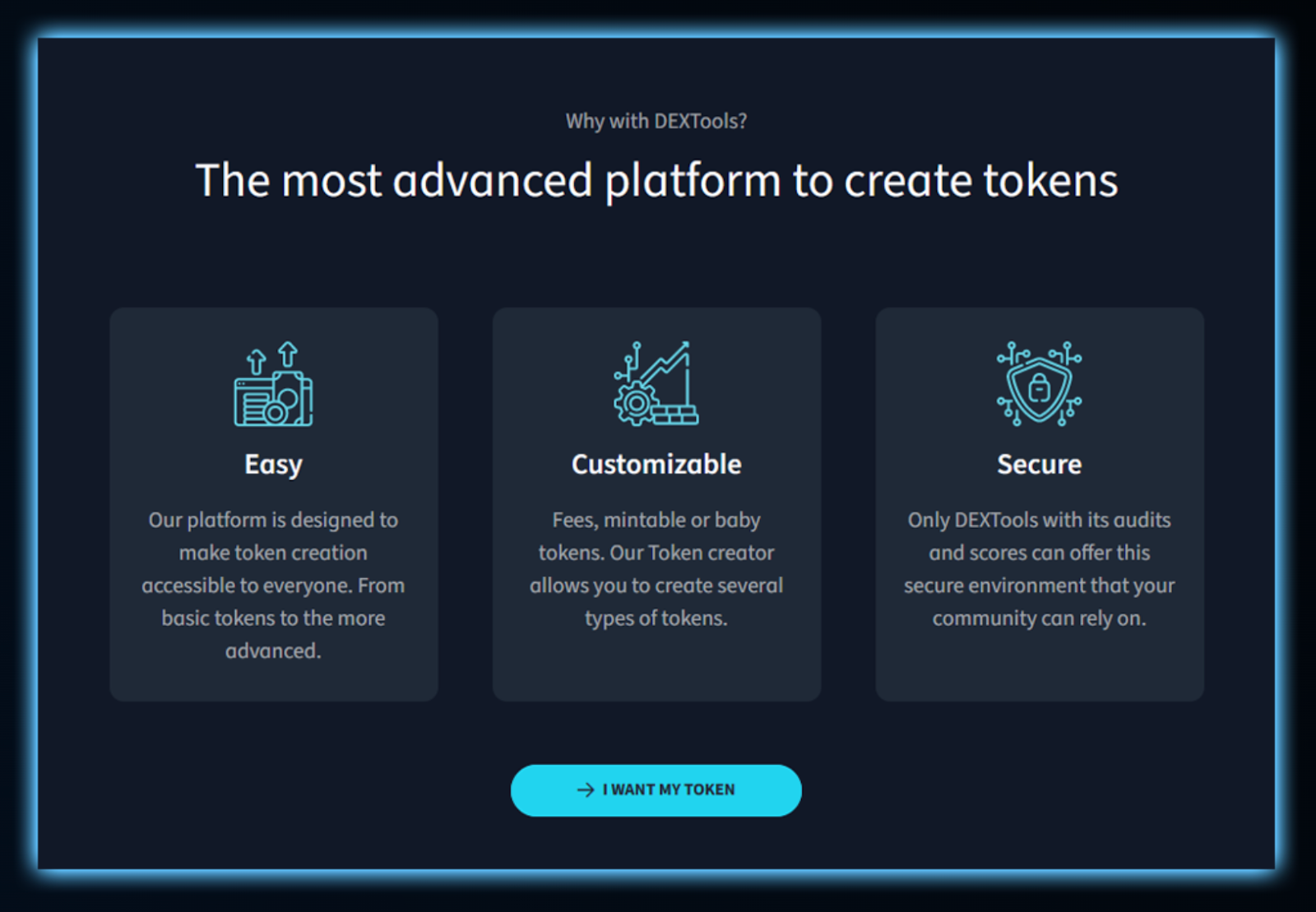 - Secure Token Creation: A recent feature that allows verified users to create tokens directly within DEXTools’ interface, adding a new layer of utility to the platform.