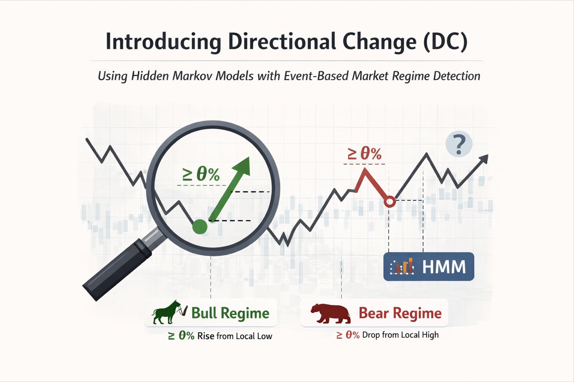 However, Chen and Tsang (2021) proposed a different direction: instead of describing the market “by time,” we describe it “by events.” Specifically, they use Directional Change (DC) indicators as inputs to an HMM to detect regime transitions.