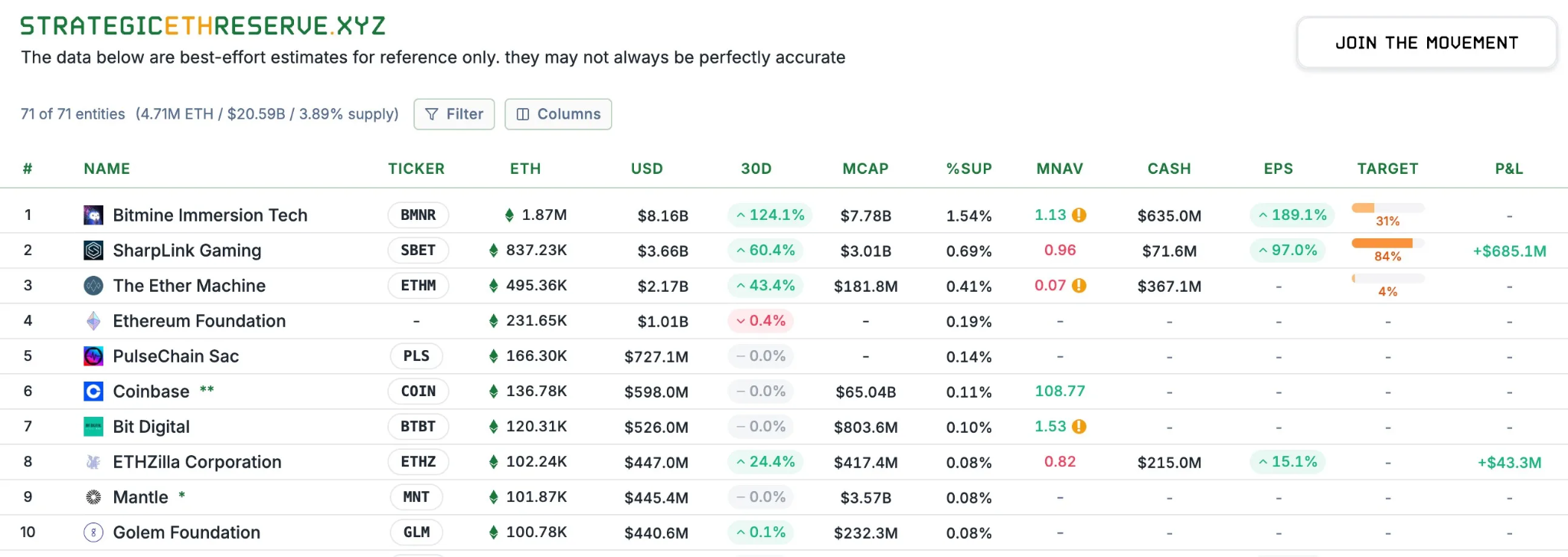 And here’s where the difference becomes clear. We can see that most early ETH treasuries stumbled on the same hurdles: tangled balance sheets, thin liquidity, or an inability to turn strategy into NAV growth. BitMine broke that pattern from day one. Its clean structure reassured investors, its transparency built trust, and its execution converted that trust into hard numbers.