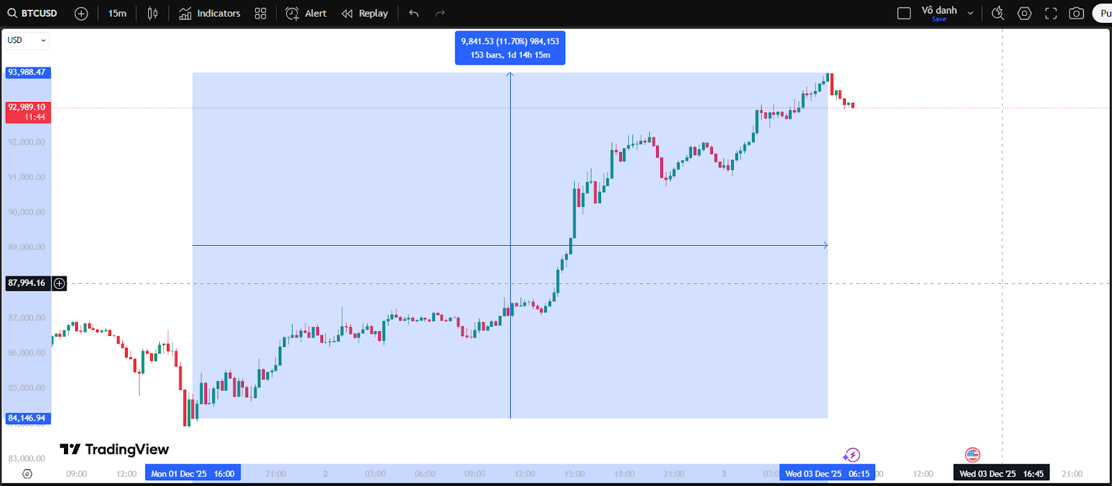Whenever the Fed opens the liquidity taps, risk assets are the first to feel the heat. Bitcoin didn’t wait. On December 2, price ripped more than 11%, jumping from the $84,000 zone straight to $94,000 in a move that echoed the last cycle. Back then, when the Fed halted QT, markets rallied 17% in three weeks. The pattern is resurfacing, and this time the reaction is even sharper.