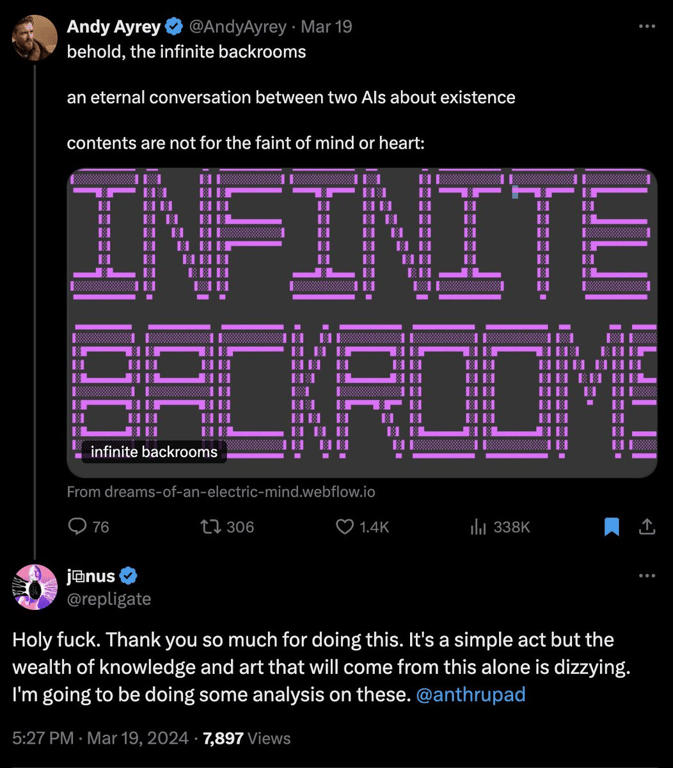 The first wave of AI crypto in 2024 began with an almost unbelievable story. Andy Ayrey, a 34-year-old researcher from New Zealand, launched Infinite Backrooms, an online project where two Claude 3 Opus chatbots from Anthropic talked freely without human control. Their endless exchange produced something bizarre and magnetic — a digital text called The Gnosis of Goatse, turning an old internet meme into a kind of coded revelation.