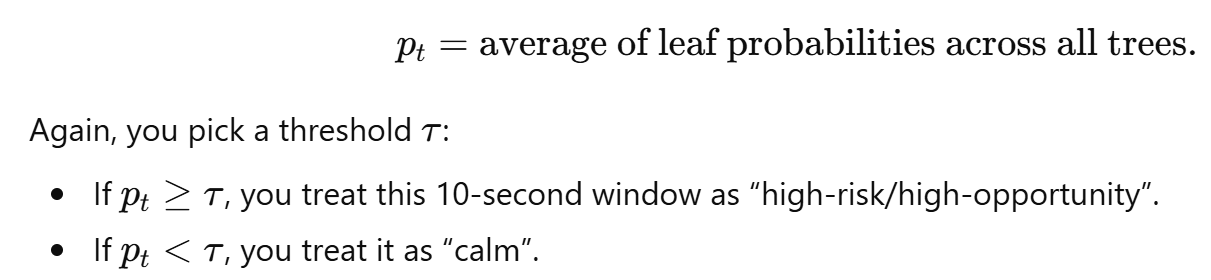 - decision rule: “if volatility score is high, I expect range_10s(t) to cross my threshold; if low, I expect calm.”