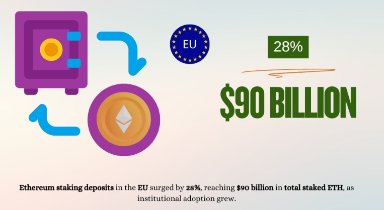 - EU staking participation surged 39% in 2025, ETH deposits up 28% YoY