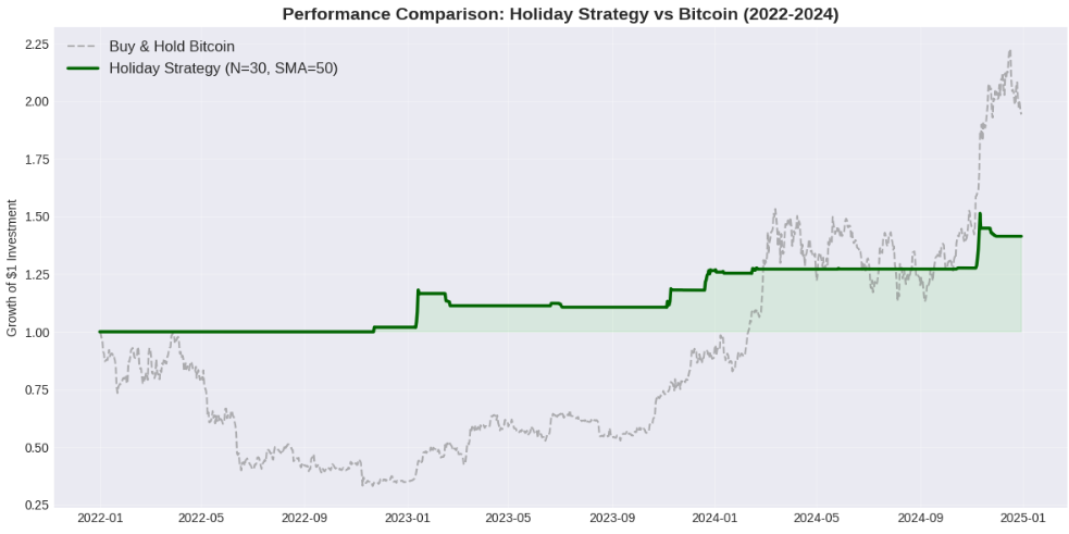 The Holiday Momentum Breakout Strategy is built on the idea that U.S. Federal Holidays influence short-term volatility. Although digital asset markets operate continuously, trading activity from major institutions still follows the traditional U.S. market schedule.