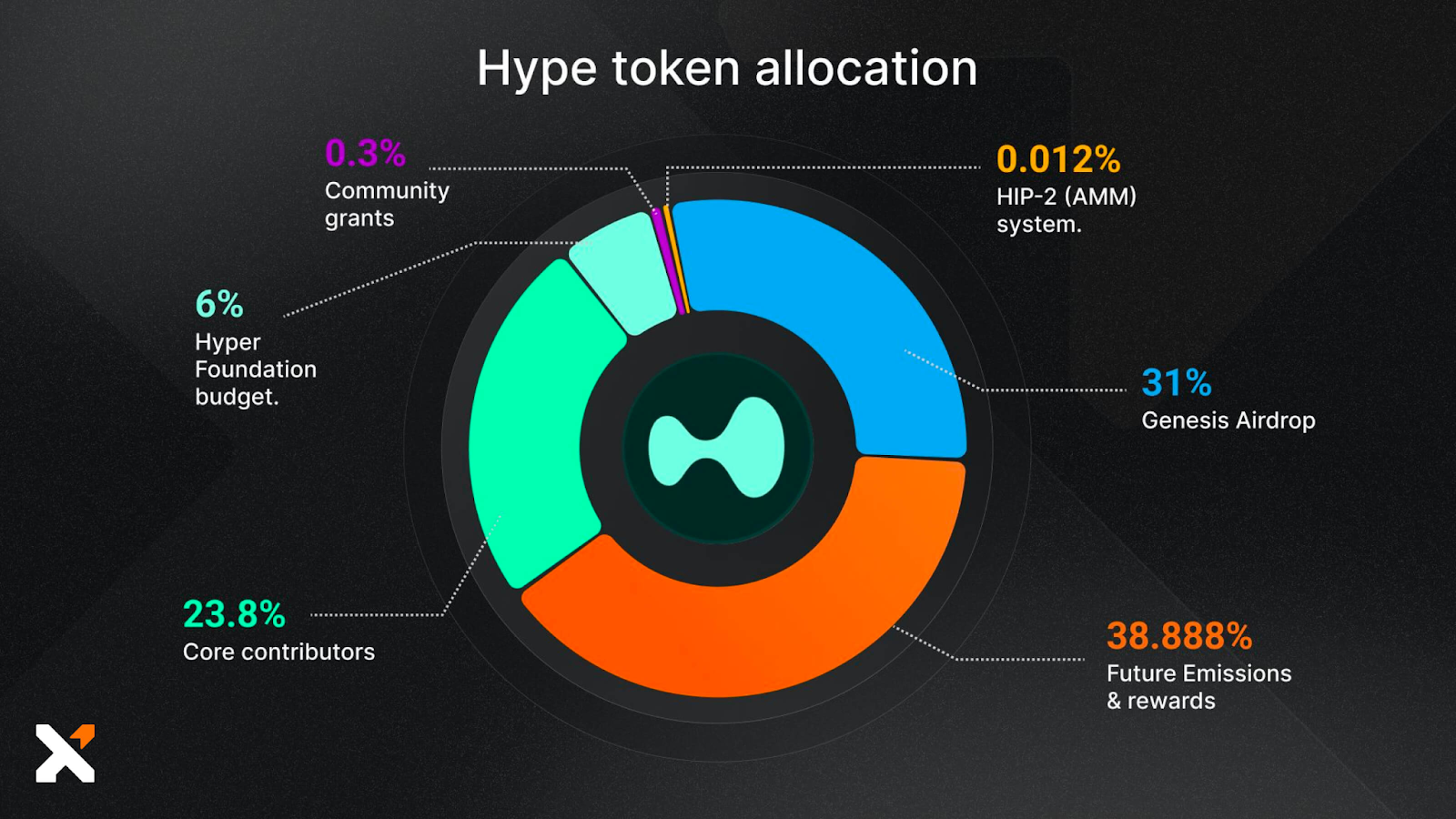 The token’s most powerful feature is its buyback and burn mechanism. Between 93% and 97% of protocol fees are used to repurchase $HYPE from the market and permanently remove it from circulation. This creates consistent deflationary pressure and directly links platform activity to token value.