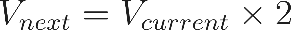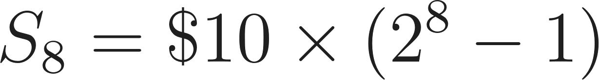 Imagining you start with a $10 trade (). You lose 7 times in a row and need to place the 8th trade (n=8) to win back that initial $10.