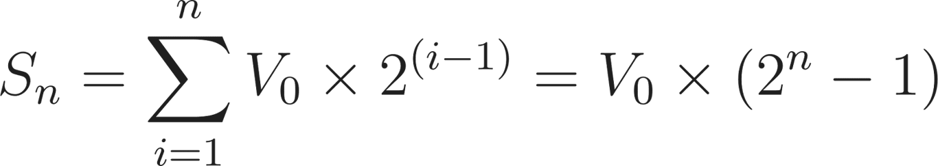 The total capital () required to sustain a Martingale sequence up to step