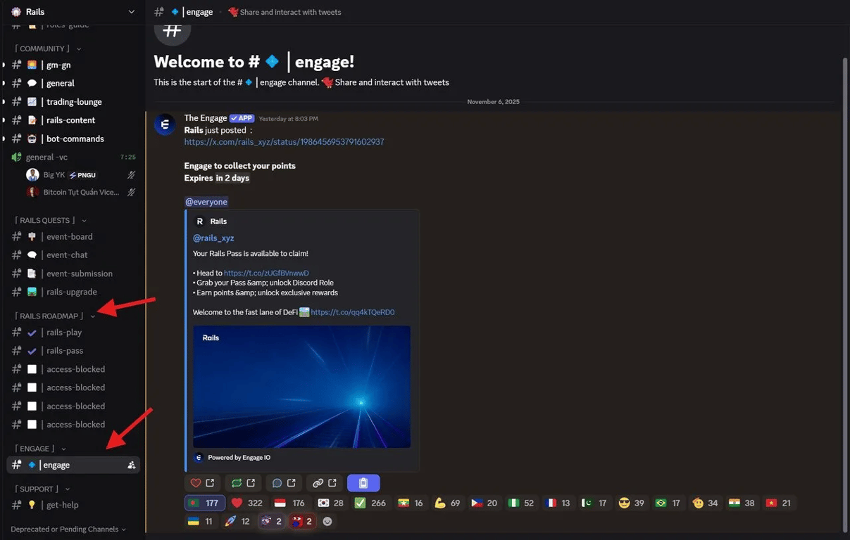 Access the Rails Discord server, complete verification, and review campaign information in the designated channels.
