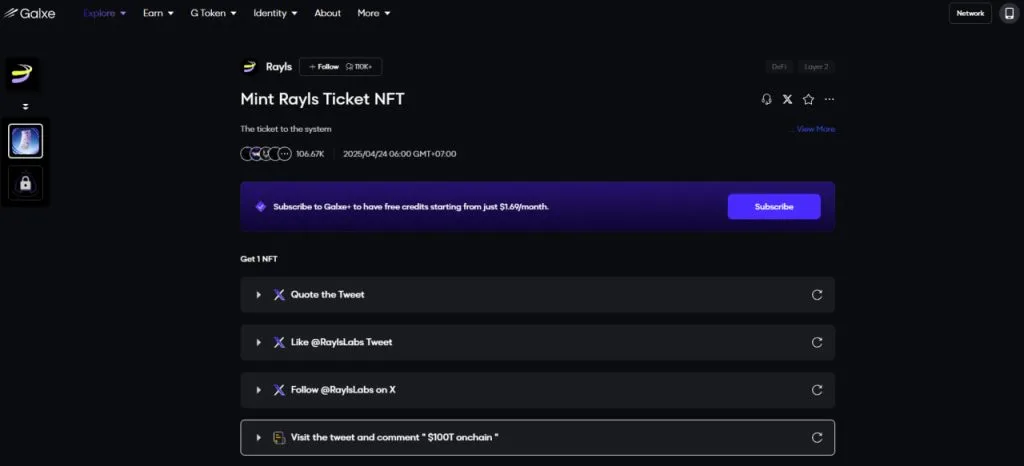 - Complete various platform tasks to earn $RP (Rayls Points), the current reward points of the program