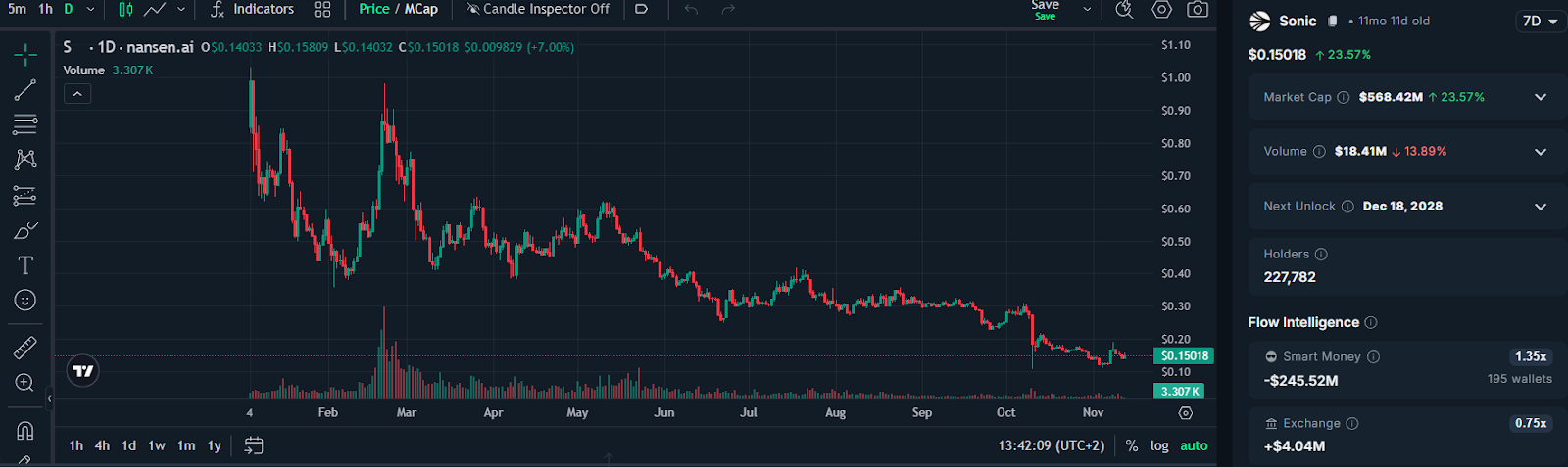 The decline was further amplified by large sell-offs from “smart money” traders, who reportedly offloaded around $245 million worth of S tokens in a single week.