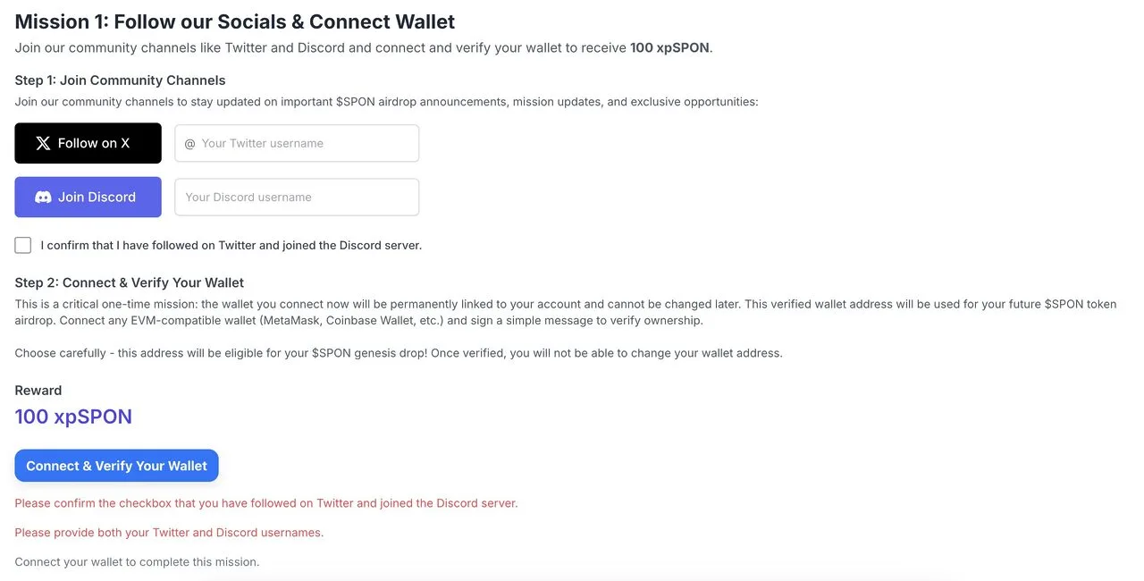 Accumulate 1,000 points to qualify for the SPON token whitelist. This threshold must be reached to become eligible for the airdrop allocation.