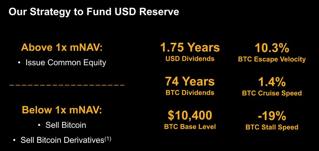 - Strategy creates a $1.44 billion USD reserve to cover at least 12 months of dividends.