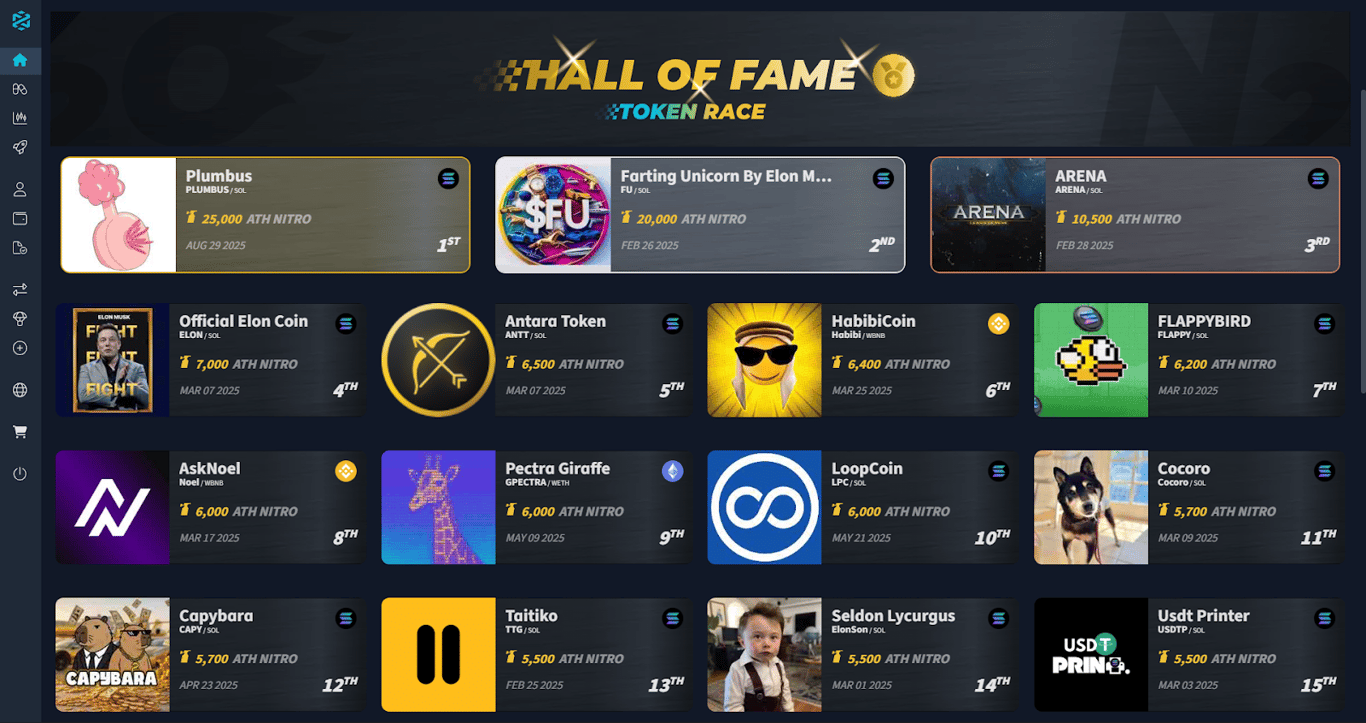 Token Race is a leaderboard feature that concentrates visibility on trending tokens based on ranking velocity and engagement signals like Nitro.