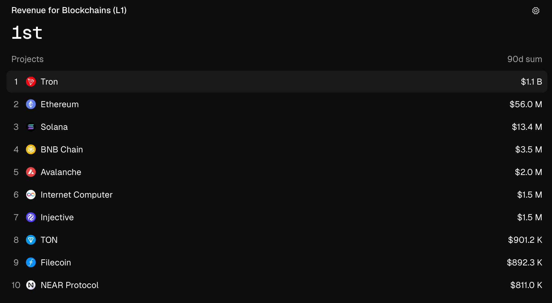 • $1.1B fees generated in 90 days keeps Tron ahead of Ethereum, Solana, BNB