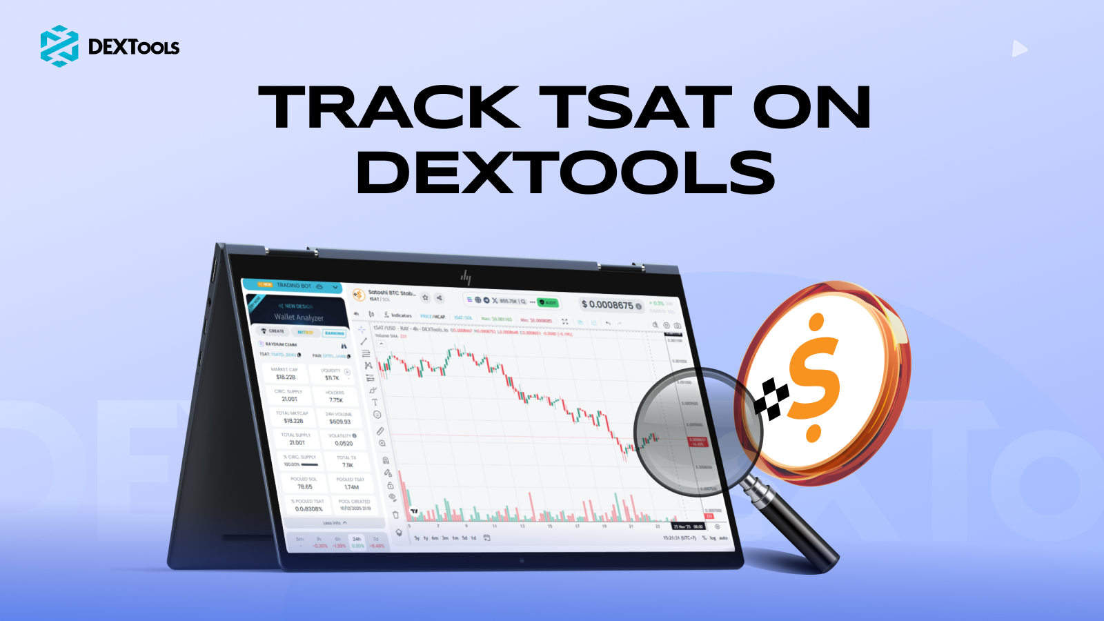 The tSAT Initiative represents a significant step toward standardized, crypto-native analytics. By unifying measurements in satoshis, DEXTools empowers traders to see through fiat noise, compare tokens across chains more consistently, and build tools that communicate in a shared, stable unit. Whether trading microcap tokens, running market-making algorithms, or developing cross-chain analytics, tSAT offers a clear and practical yardstick. Activate tSAT mode in DEXTools today to explore your favorite pairs in a crypto-native perspective and gain sharper insights into market dynamics.