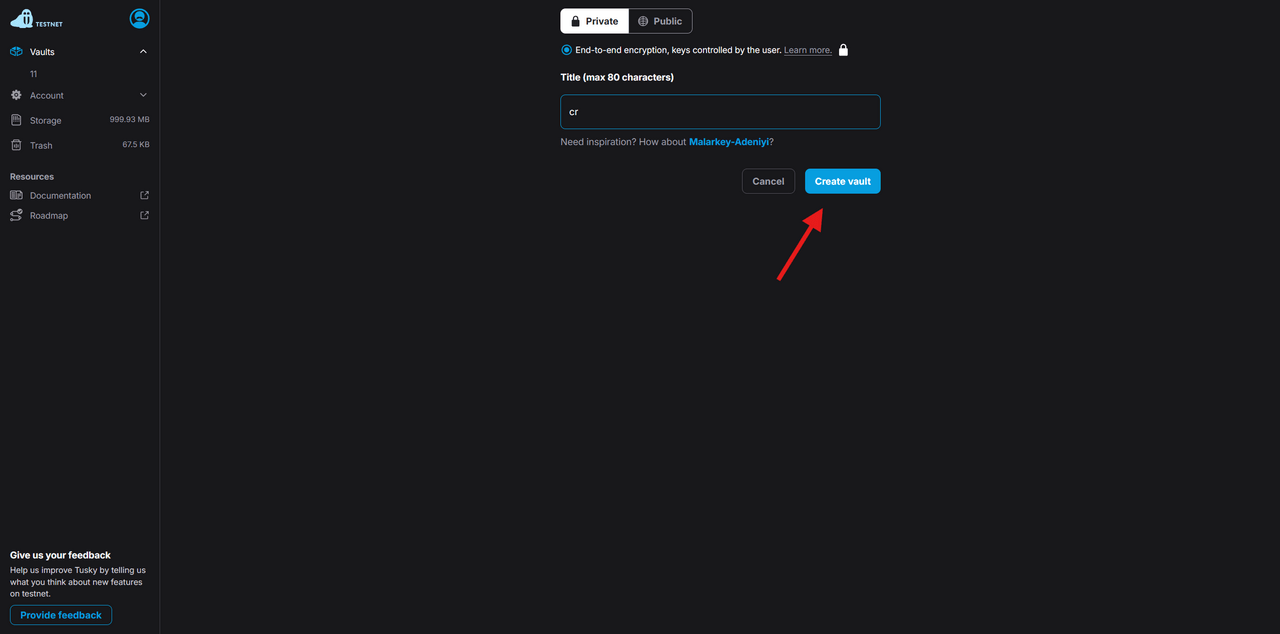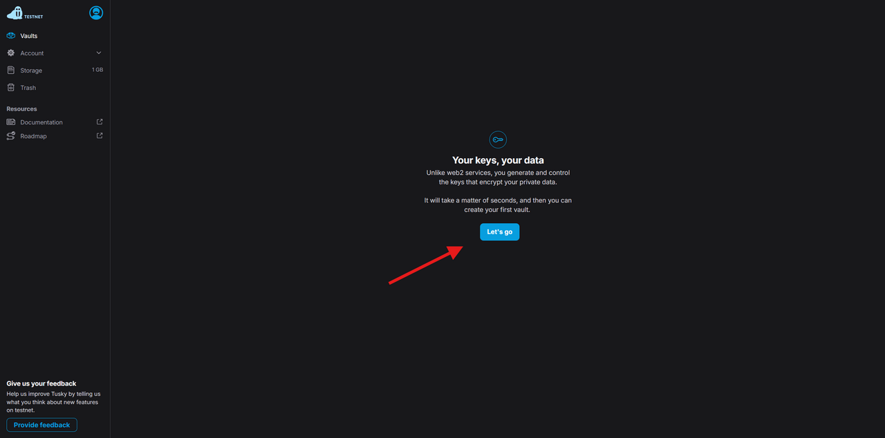 Step 3 – Initialize Storage Vault: Create the first data vault on the platform to begin using the features.