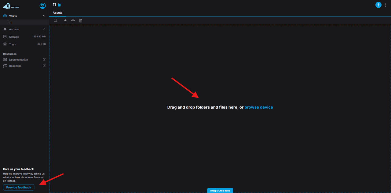 Step 4 – Perform Interactions: Users need to actively use the storage vault by uploading various types of data such as images, videos, documents, or performing management operations like deleting data. Additionally, sharing feedback through the form on the website or the official Discord channel is also encouraged.
