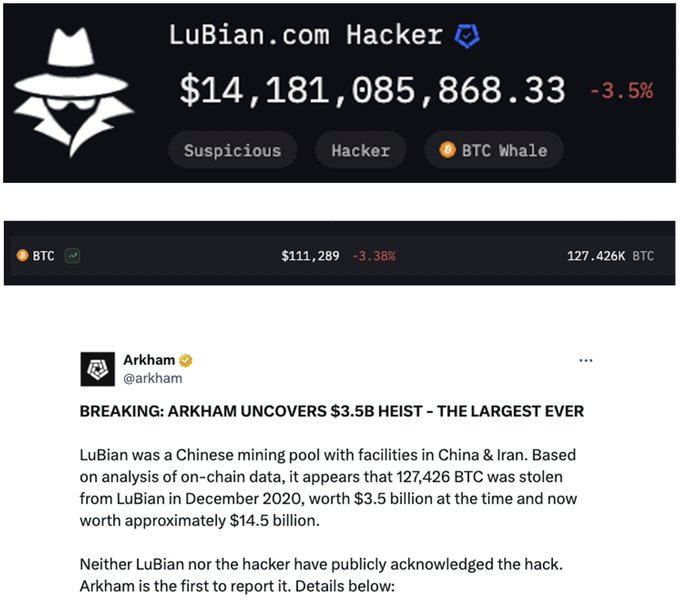 At the center of the story was the breach of LuBian Bitcoin Mining Pool, which occurred between December 28 and 29, 2020. At that time, LuBian ranked among the largest mining pools in the world, holding roughly 6% of global Bitcoin hashrate. Attackers stole 127,272.07 BTC, worth about $3.5 billion then, more than 90% of LuBian’s total reserves. As Bitcoin’s price surged over the following years, the value of the stolen funds ballooned to more than $16 billion at the October 2025 peak and now fluctuates near $13–14.5 billion, depending on market conditions.