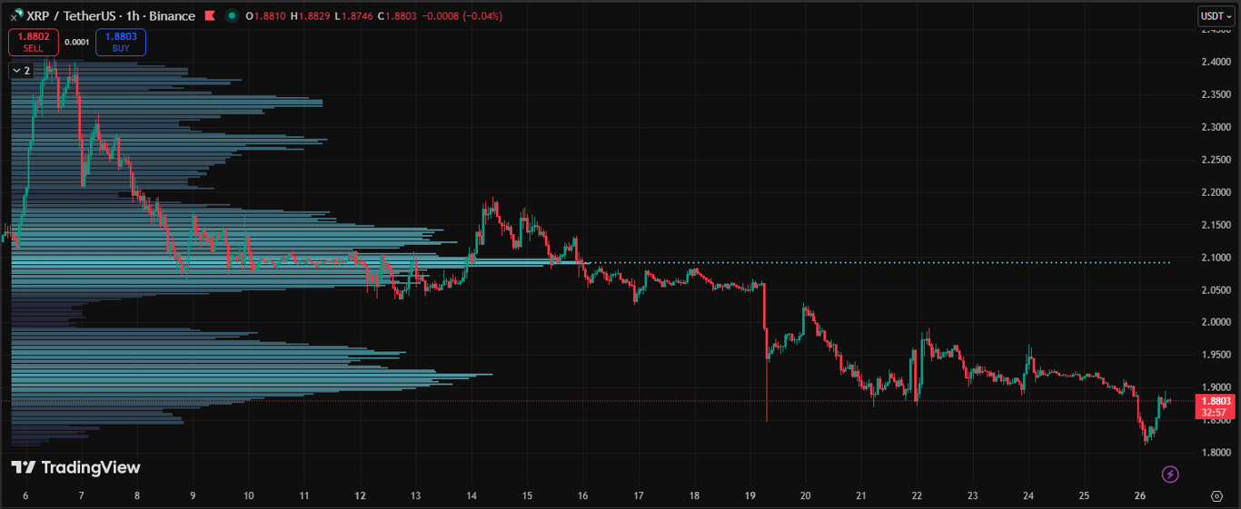Two short-term paths stand out. If XRP fails to reclaim $1.91 and breaks below $1.88, price can slide toward the $1.75 area and possibly extend to $1.61. If XRP breaks above $1.96 with strong volume, the market can treat the move as a trend shift and target a retest near $2.16.