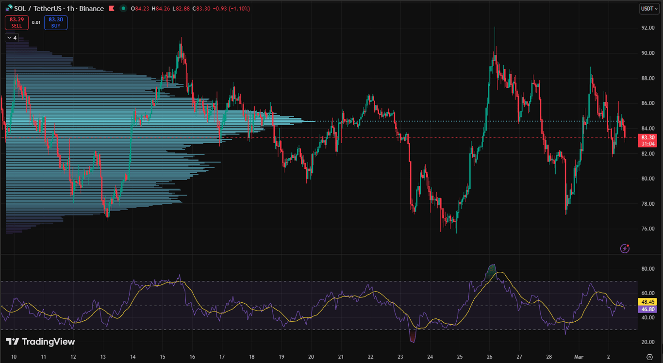 - Volume Profile: Strong resistance is established at $88.00, while the next major liquidity pocket sits significantly lower near $76.00.