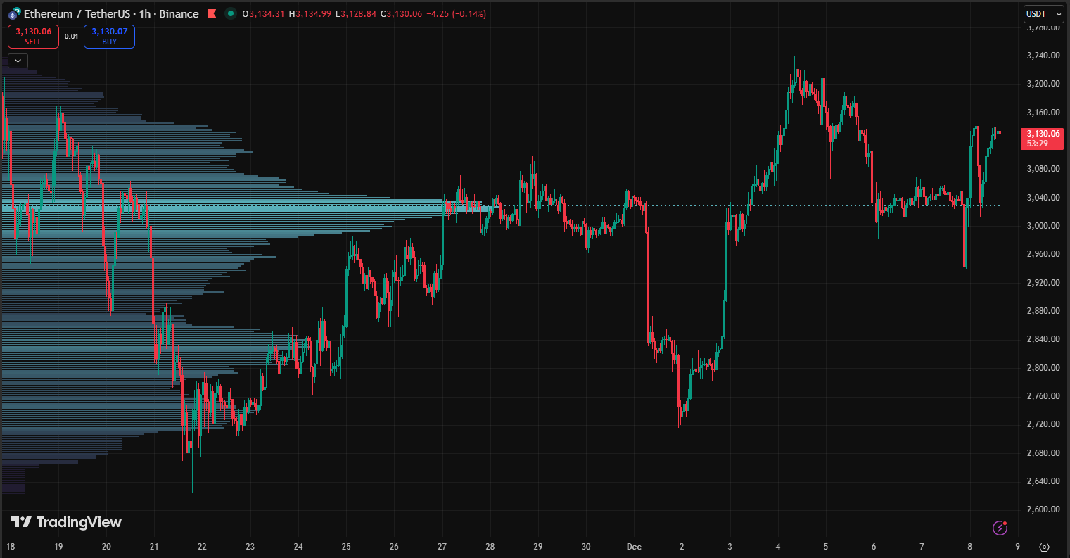 From here, ETH likely takes one of two paths. A dip under $3,125 opens room toward $3,100, while holding above $3,125 keeps a $3,125–$3,150 consolidation in play as markets wait for fresh catalysts. A push into $3,150 must overcome resistance from a declining 50-period EMA and weak buy volume. Bias stays neutral with a slight bullish tilt if $3,125 holds and higher highs form.